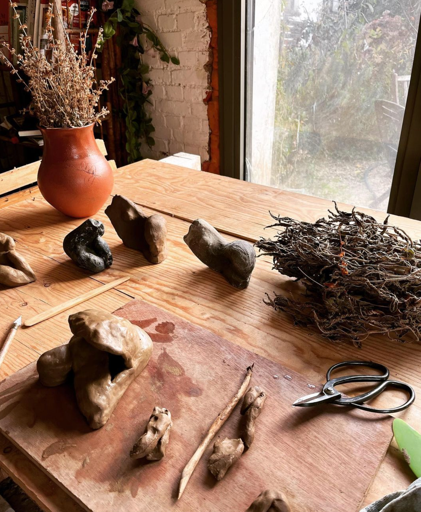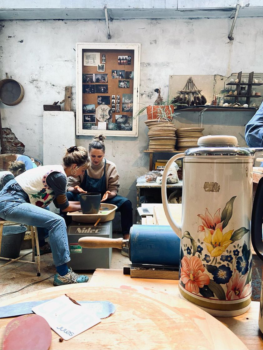 Pekpottenbak is een atelier waar je kan pottenbakken, schilderen, naaien, borduren en allerhande ambachten kan leren. Caroline, bezielster van dit atelier, heeft een nostalgisch verlangen naar een tijd waar ambachten, kunsten en leven van't land samenkomen. Zowel occasionele cursussen, teambuildings als eigen werk voor een expo worden hier gemaakt.