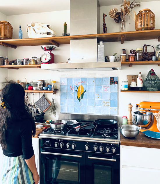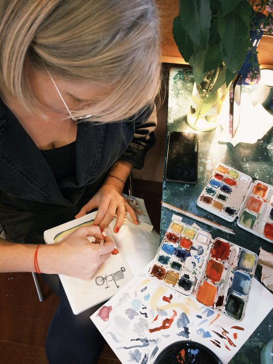 Thema's gaan van de keuken tot de bergen, van het veld tot de markt, van de stad tot den buiten, van de bomma tot een nieuw zaadje. Elke levensfase, personage, plek, ervaring associeert Caroline graag met beeldend werk. Zo zijn de 2 ateliers mini musea geworden aan gevonden voorwerpen en zelf gecreëerde..